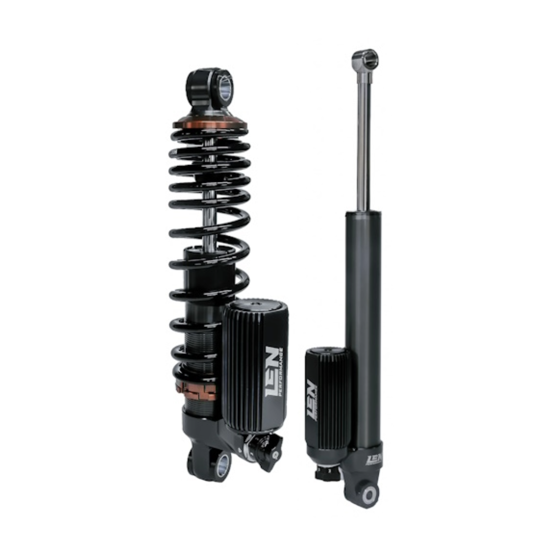 5 Step adjustable compression. Aluminum finned reservoir tube. High flow piston. Forged aluminium eyelets. Fully rebuildable